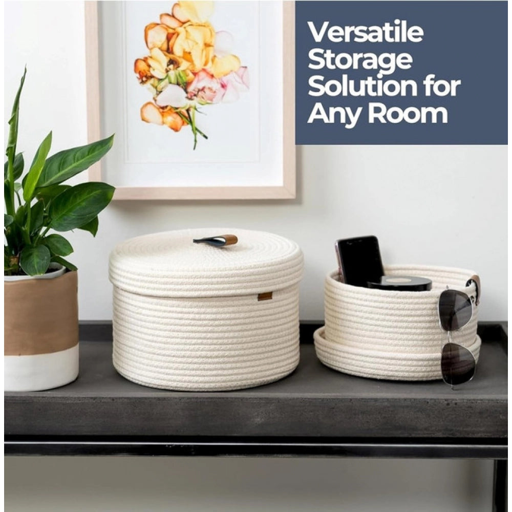 Cotton 2 Pcs Set Roti Box Storage Basket With Lid