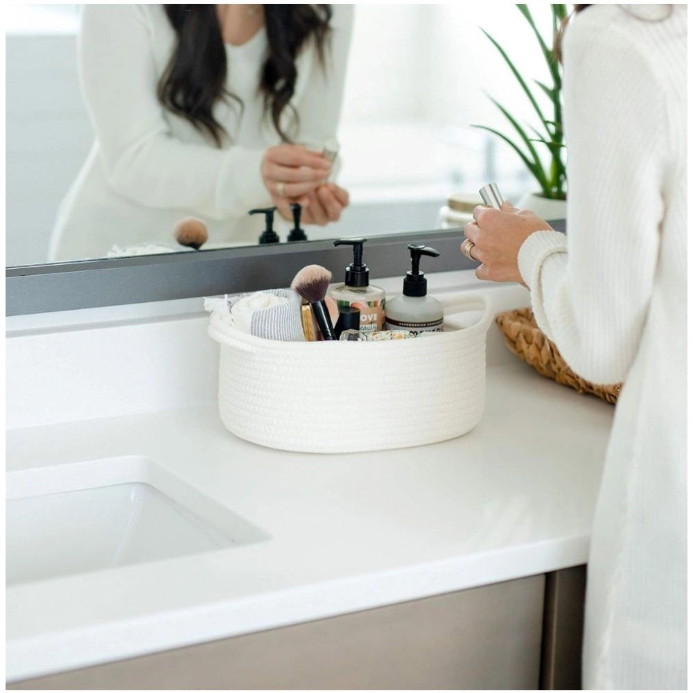 Cotton Oval Basket Pack of 3 Storage Basket For Clothes (White)