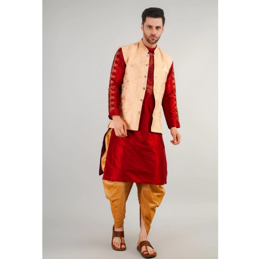 Generic Men's Jacquard Self-Design Sleeveless Mandarin Neck Waistcoat (Beige)