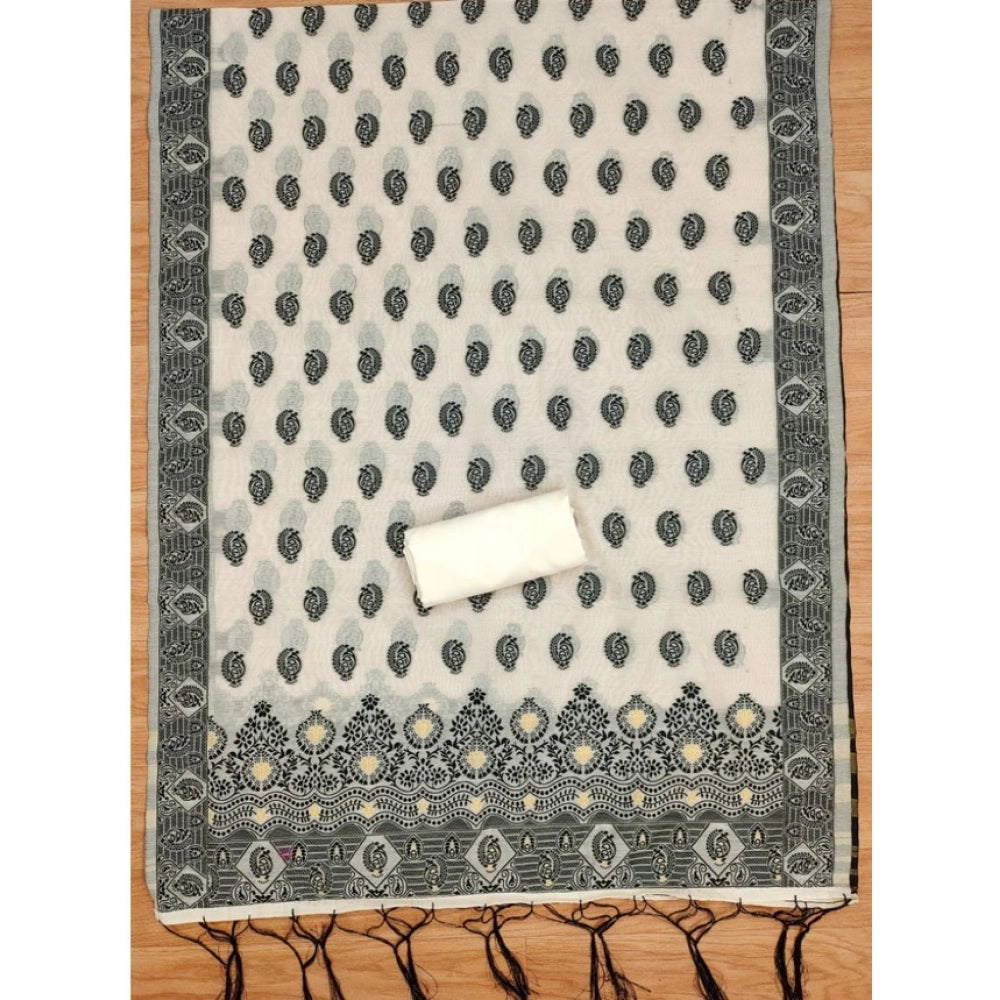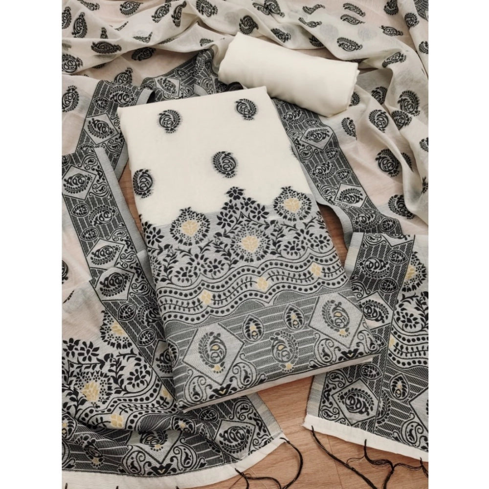 Generic Women's Banarasi Silk Printed Unstitched Salwar Suit Material With Dupatta (Black, 3Mtrs)