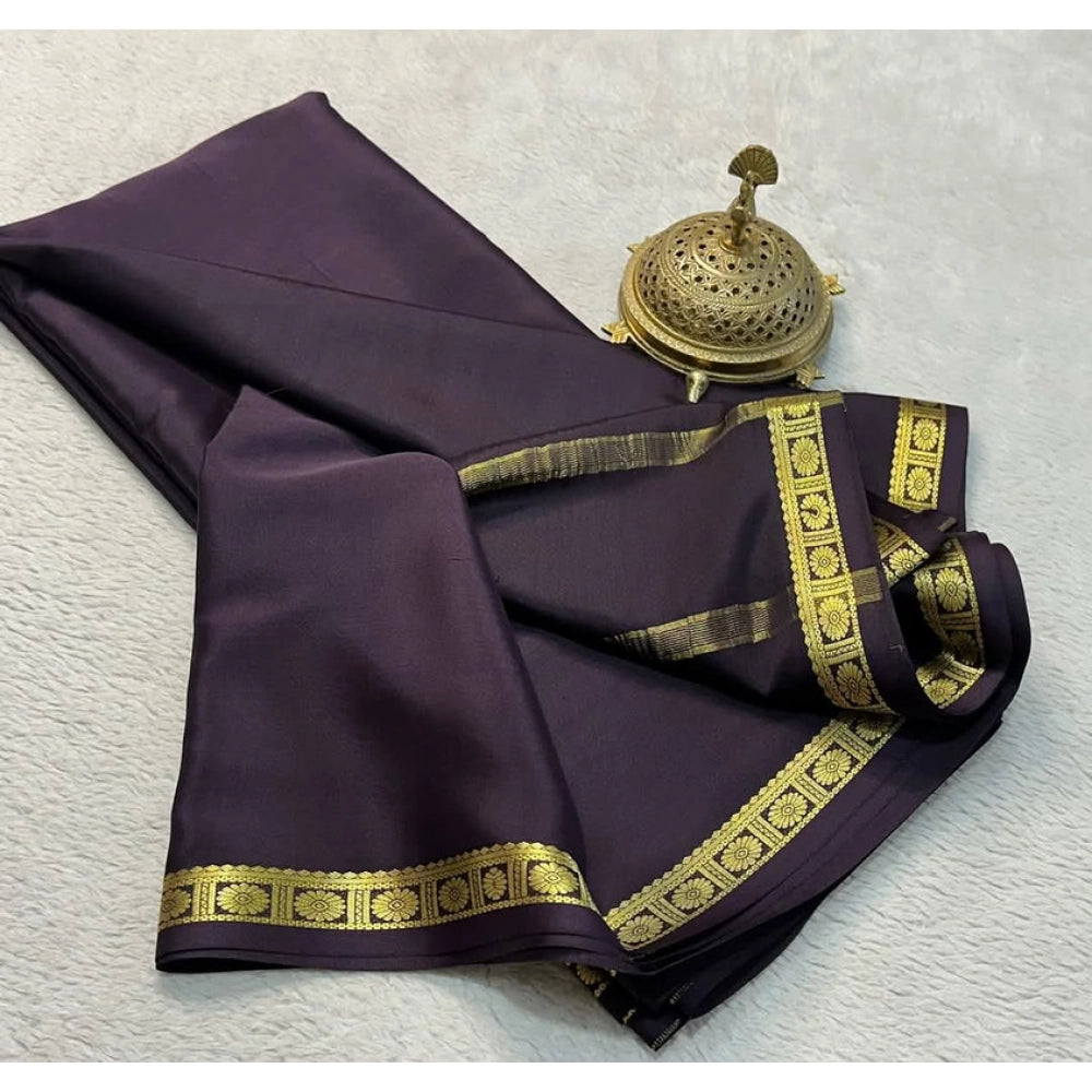 Women's Crepe Chit Pallu Solid Saree With Unstitched Blouse 5.5Mtr