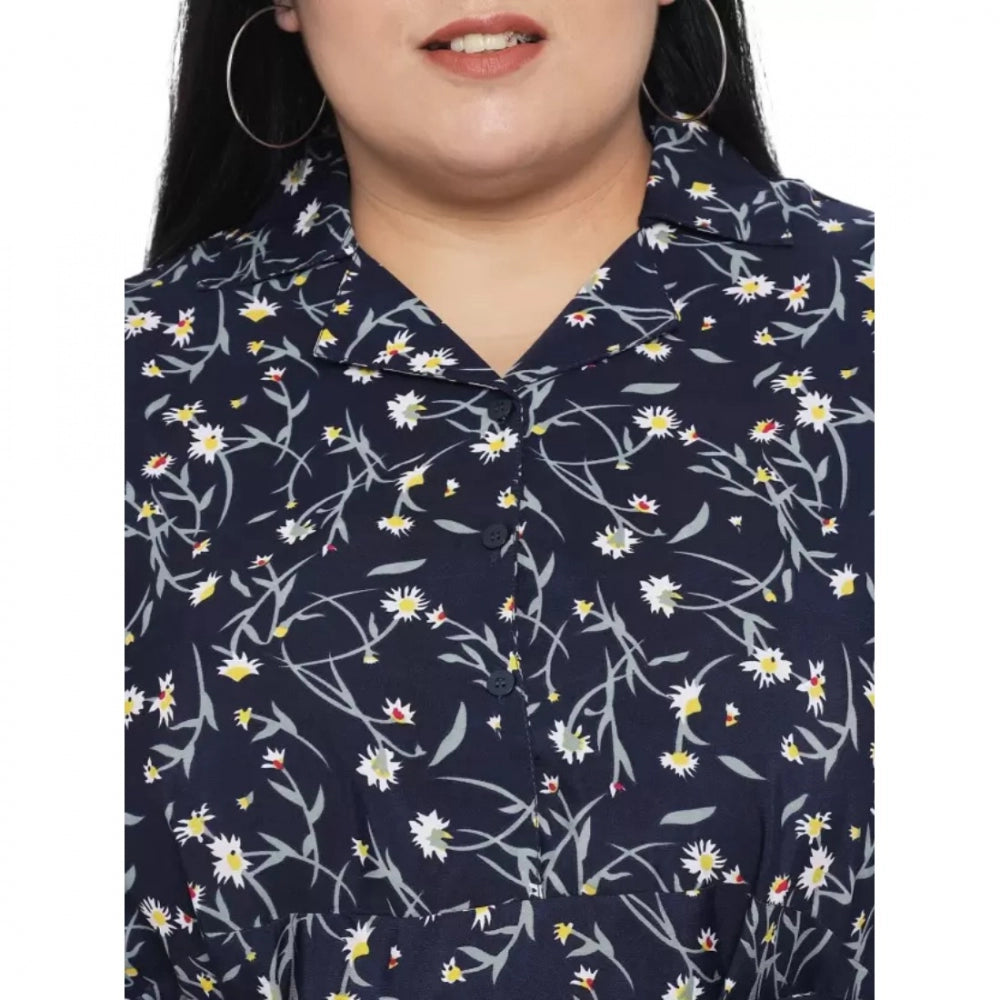 Generic Women's Fit And Flare Blue Dress (Color:Blue, Material:Polyester)