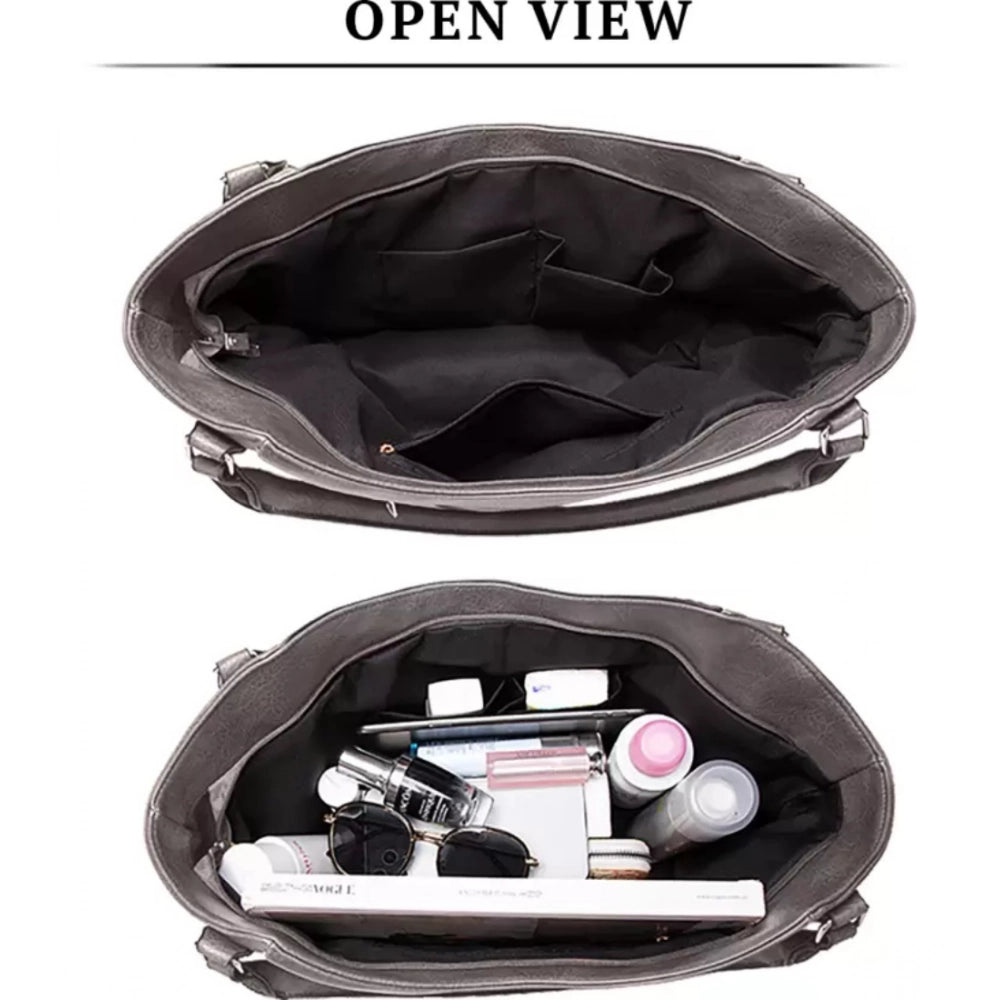 Women's PU Leather Large Shoulder Zipper Handbag (Grey)