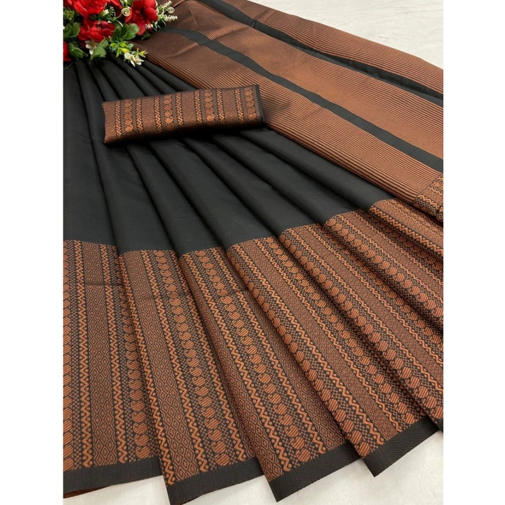 Women's Silk Printed Saree With Unstitched Blouse 5.5Mtr (Black)
